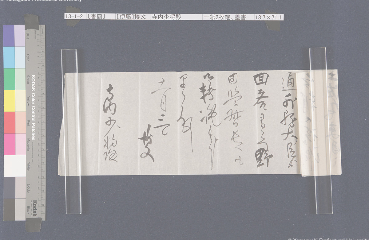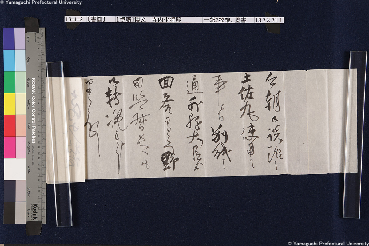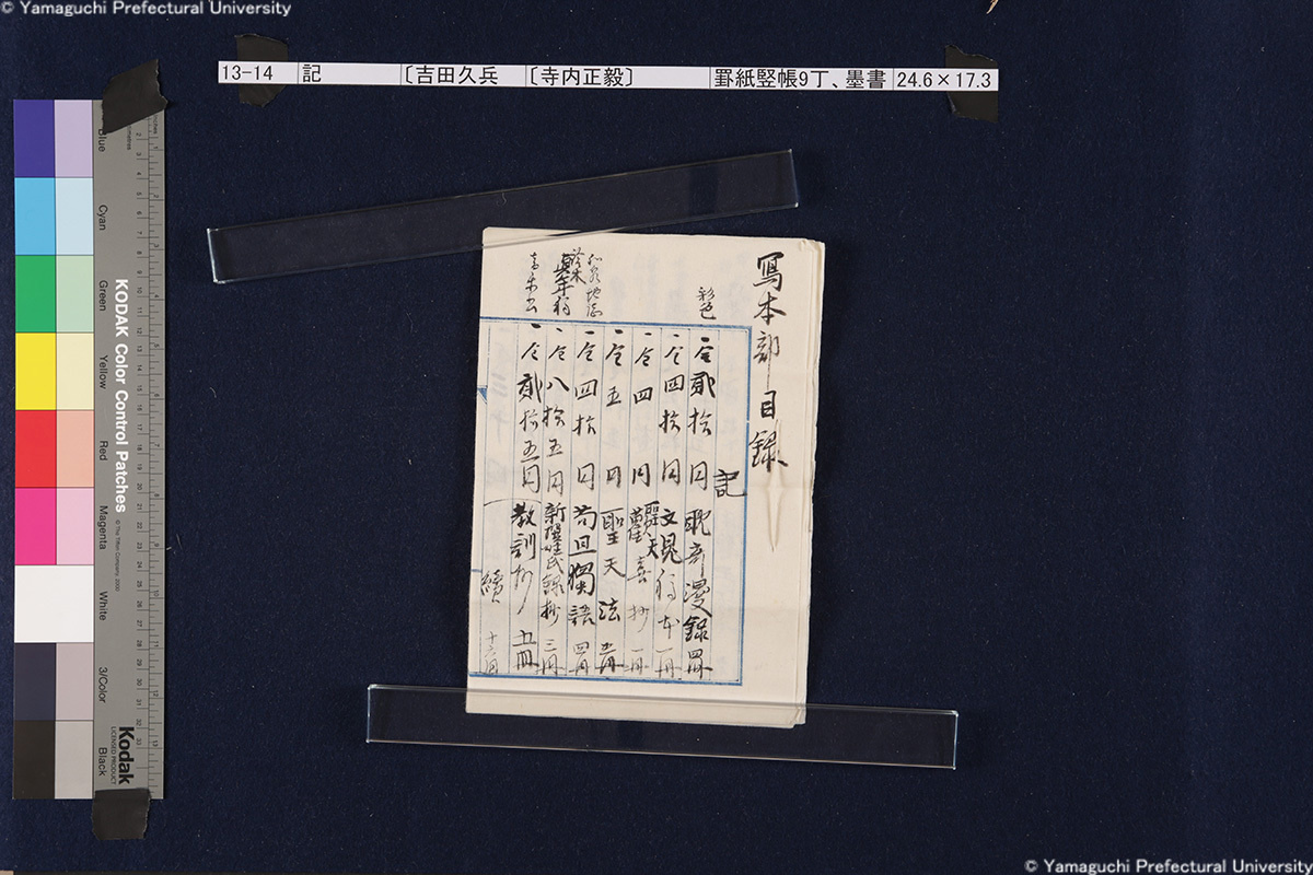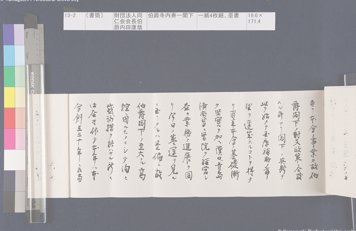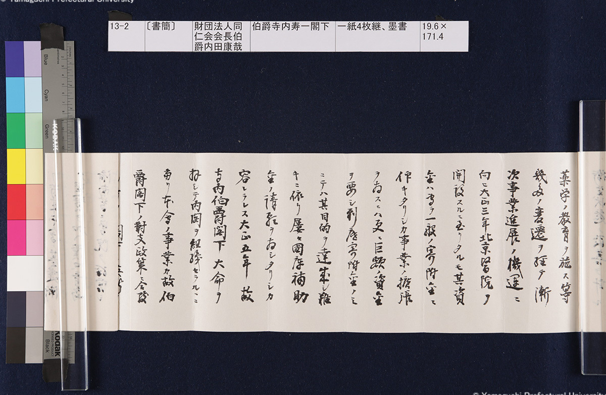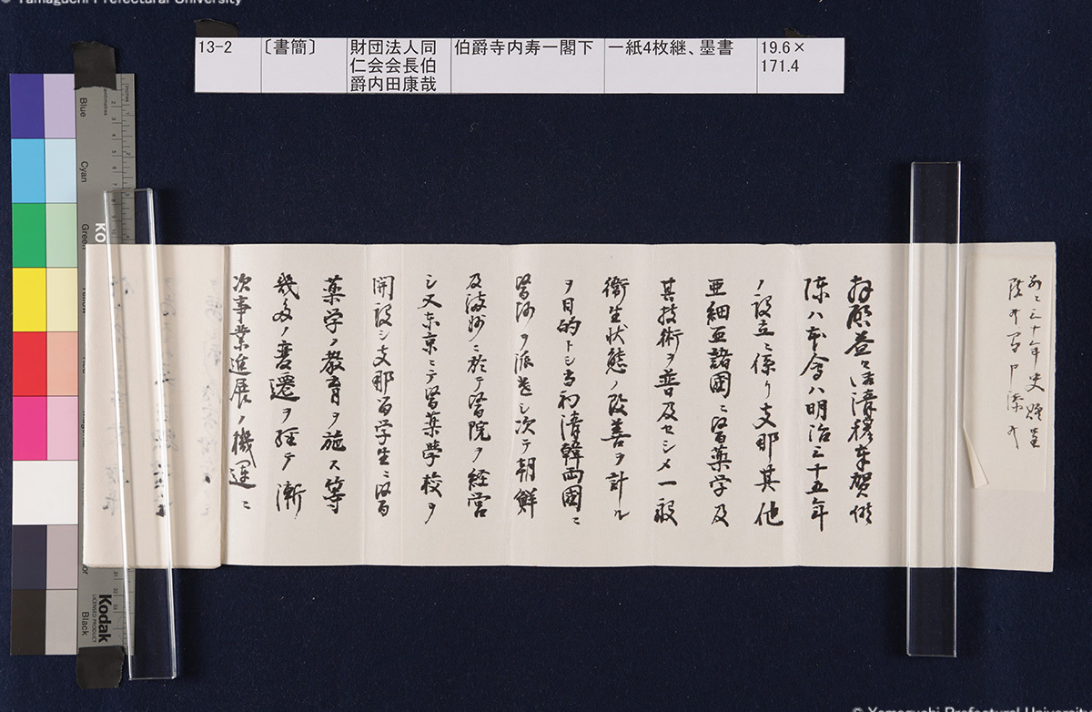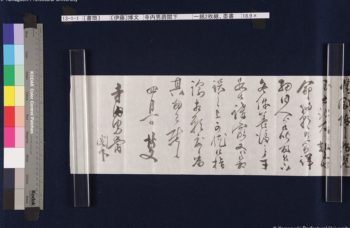 13 13-1-0-0〔封筒〕封筒、青鉛筆書21.5×8.5cm 13-1-0-1〔封筒〕封筒、青鉛筆書21.5×8.5cm 13-1-1-0-0〔書簡〕〔伊藤〕博文寺内男爵閣下一紙2枚継、墨書18.9×131.2cm 13-1-1-0-1〔書簡〕〔伊藤〕博文寺内男爵閣下一紙2枚継、墨書18.9×131.2cm 13-1-1-1-0〔書簡〕〔伊藤〕博文寺内男爵閣下一紙2枚継、墨書18.9×131.2cm 13-1-1-1-1〔書簡〕〔伊藤〕博文寺内男爵閣下一紙2枚継、墨書18.9×131.2cm 13-1-1-1-2〔書簡〕〔伊藤〕博文寺内男爵閣下一紙2枚継、墨書18.9×131.2cm 13-1-2-0〔書簡〕〔伊藤〕博文寺内少将殿一紙2枚継、墨書18.7×71.1cm 13-1-2-1〔書簡〕〔伊藤〕博文寺内少将殿一紙2枚継、墨書18.7×71.1cm 13-2-0〔書簡〕財団法人同仁会会長伯爵内田康哉(公印)伯爵寺内寿一閣下一紙4枚継、墨書19.6×171.4cm 13-2-1〔書簡〕財団法人同仁会会長伯爵内田康哉(公印)伯爵寺内寿一閣下一紙4枚継、墨書19.6×171.4cm 13-2-2〔書簡〕財団法人同仁会会長伯爵内田康哉(公印)伯爵寺内寿一閣下一紙4枚継、墨書19.6×171.4cm 13-2-3〔書簡〕財団法人同仁会会長伯爵内 田康哉(公印)伯爵寺内寿一閣下一紙4枚継、墨書19.6×171.4cm 13-3〔書簡〕〔杉ヵ〕孫七郎寺内賢台一紙2枚継、墨書18.9×57.8cm 13-4〔書簡〕瀬名義利(印)藤田副官殿一紙2枚継、墨書17.8×67.7cm 13-5〔書簡〕〔杉ヵ〕孫七郎寺内賢台 梧右一紙、墨書18.8×50.3cm 13-6〔書簡〕下条正雄寺内元帥閣下侍曹一紙2枚継、墨書19.1×52.4cm 13-7-0〔書簡〕趙義淵寺内総督閣下一紙、墨書19.7×85.9cm 13-7-1〔書簡〕趙義淵寺内総督閣下一紙、墨書19.7×85.9cm 13-8-0〔書簡〕喜八郎寺内尊台梧右一紙2枚継、墨書18.8×77.0cm 13-8-1〔書簡〕喜八郎寺内尊台梧右一紙2枚継、墨書18.8×77.0cm 13-9-0-0〔書簡〕〔吉田〕庫三寺内伯爵閣下一紙2枚継、墨書18.9×107.8cm 13-9-0-1〔書簡〕〔吉田〕庫三寺内伯爵閣下一紙2枚継、墨書18.9×107.8cm 13-9-1-0〔書簡〕〔吉田〕庫三寺内伯爵閣下一紙2枚継、墨書18.9×107.8cm 13-9-1-1〔書簡〕〔吉田〕庫三寺内伯爵閣下一紙2枚継、墨書18.9×107.8cm 13-10-0-0〔書簡〕春永良雄寺内相公閣下一紙3枚継、墨書18.7×134.3cm 13-10-0-1〔書簡〕春永良雄寺内相公閣下一紙3枚継、墨書18.7×134.3cm 13-10-1-0〔書簡〕春永良雄寺内相公閣下一紙3枚継、墨書18.7×134.3cm 13-10-1-1〔書簡〕春永良雄寺内相公閣下一紙3枚継、墨書18.7×134.3cm 13-10-1-2〔書簡〕春永良雄寺内相公閣下一紙3枚継、墨書18.7×134.3cm 13-11-0-0〔書簡〕熊谷直之拝具伯爵寺内閣下侍側一紙2枚継、墨書19.4×67.6cm 13-11-0-1〔書簡〕熊谷直之拝具伯爵寺内閣下侍側一紙2枚継、墨書19.4×67.6cm 13-11-1-0〔書簡〕熊谷直之拝具伯爵寺内閣下侍側一紙2枚継、墨書19.4×67.6cm 13-11-1-1〔書簡〕熊谷直之拝具伯爵寺内閣下侍側一紙2枚継、墨書19.4×67.6cm 13-12-0-0〔書簡〕〔杉山〕茂丸魯庵老伯閣下一紙3枚継、墨書19.7×102.8cm 13-12-0-1〔書簡〕〔杉山〕茂丸魯庵老伯閣下一紙3枚継、墨書19.7×102.8cm 13-12-1-0〔書簡〕〔杉山〕茂丸魯庵老伯閣下一紙3枚継、墨書19.7×102.8cm 13-12-1-1〔書簡〕〔杉山〕茂丸魯庵老伯閣下一紙3枚継、墨書19.7×102.8cm 13-13-0-0〔書簡〕斯波淳六郎寺内総督閣下乞御親展一紙、墨書18.2×71.6cm 13-13-0-1〔書簡〕斯波淳六郎寺内総督閣下乞御親展一紙、墨書18.2×71.6cm 13-13-1-1〔書簡〕斯波淳六郎寺内総督閣下乞御親展一紙、墨書18.2×71.6cm 13-13-1-1〔書簡〕斯波淳六郎寺内総督閣下乞御親展一紙、墨書18.2×71.6cm 13-14-0-0記〔吉田久兵衛〕〔寺内正毅〕罫紙竪帳9丁、墨書24.6×17.3cm 13-14-0-1記〔吉田久兵衛〕〔寺内正毅〕罫紙竪帳9丁、墨書24.6×17.3cm 13-14-1-0記〔吉田久兵衛〕〔寺内正毅〕罫紙竪帳9丁、墨書24.6×17.3cm 13-14-1-1記〔吉田久兵衛〕〔寺内正毅〕罫紙竪帳9丁、墨書24.6×17.3cm 13-14-1-2記〔吉田久兵衛〕〔寺内正毅〕罫紙竪帳9丁、墨書24.6×17.3cm 13-14-1-3記〔吉田久兵衛〕〔寺内正毅〕罫紙竪帳9丁、墨書24.6×17.3cm 13-14-1-4記〔吉田久兵衛〕〔寺内正毅〕罫紙竪帳9丁、墨書24.6×17.3cm 13-14-1-5記〔吉田久兵衛〕〔寺内正毅〕罫紙竪帳9丁、墨書24.6×17.3cm 13-14-1-6記〔吉田久兵衛〕〔寺内正毅〕罫紙竪帳9丁、墨書24.6×17.3cm 13-14-1-7記〔吉田久兵衛〕〔寺内正毅〕罫紙竪帳9丁、墨書24.6×17.3cm 13-14-1-8記〔吉田久兵衛〕〔寺内正毅〕罫紙竪帳9丁、墨書24.6×17.3cm 13-14-1-9記〔吉田久兵衛〕〔寺内正毅〕罫紙竪帳9丁、墨書24.6×17.3cm 古写真編 文書編 拓本編 Home About