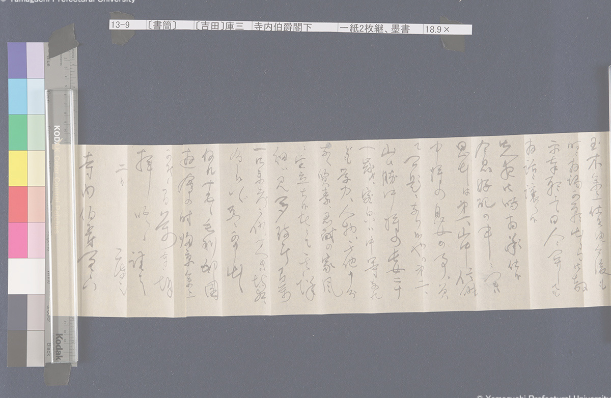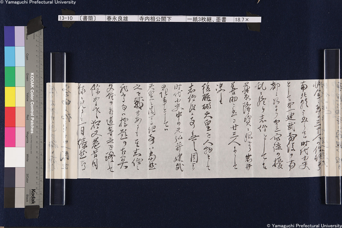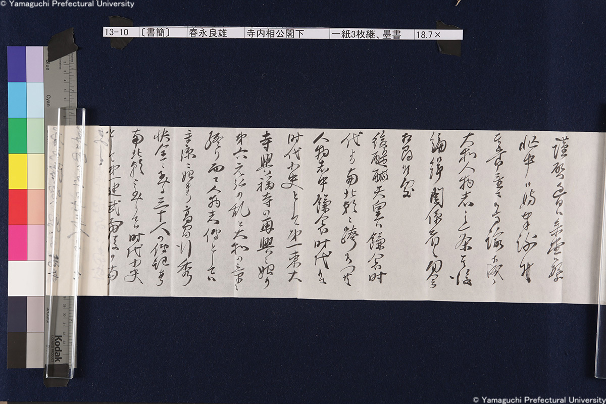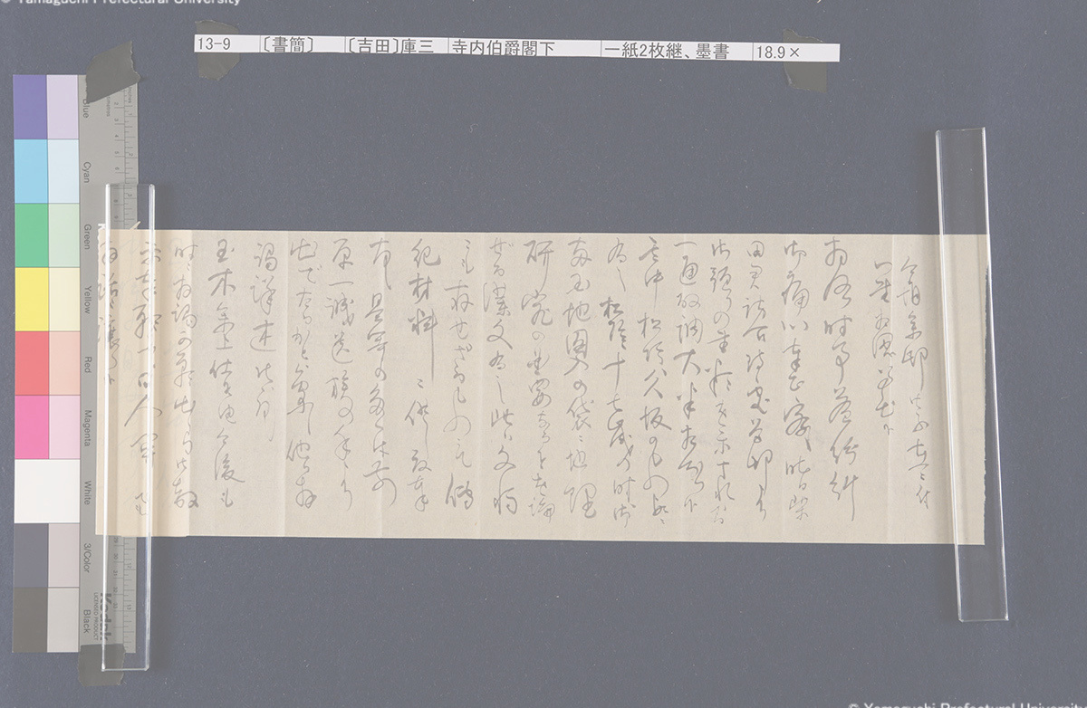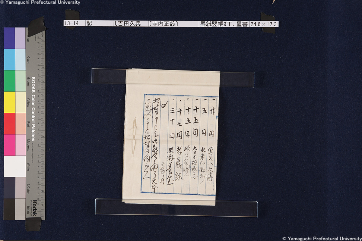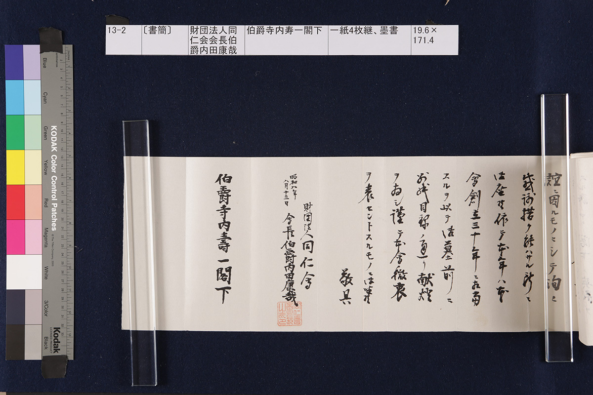 13 13-1-0-0〔封筒〕封筒、青鉛筆書21.5×8.5cm 13-1-0-1〔封筒〕封筒、青鉛筆書21.5×8.5cm 13-1-1-0-0〔書簡〕〔伊藤〕博文寺内男爵閣下一紙2枚継、墨書18.9×131.2cm 13-1-1-0-1〔書簡〕〔伊藤〕博文寺内男爵閣下一紙2枚継、墨書18.9×131.2cm 13-1-1-1-0〔書簡〕〔伊藤〕博文寺内男爵閣下一紙2枚継、墨書18.9×131.2cm 13-1-1-1-1〔書簡〕〔伊藤〕博文寺内男爵閣下一紙2枚継、墨書18.9×131.2cm 13-1-1-1-2〔書簡〕〔伊藤〕博文寺内男爵閣下一紙2枚継、墨書18.9×131.2cm 13-1-2-0〔書簡〕〔伊藤〕博文寺内少将殿一紙2枚継、墨書18.7×71.1cm 13-1-2-1〔書簡〕〔伊藤〕博文寺内少将殿一紙2枚継、墨書18.7×71.1cm 13-2-0〔書簡〕財団法人同仁会会長伯爵内田康哉(公印)伯爵寺内寿一閣下一紙4枚継、墨書19.6×171.4cm 13-2-1〔書簡〕財団法人同仁会会長伯爵内田康哉(公印)伯爵寺内寿一閣下一紙4枚継、墨書19.6×171.4cm 13-2-2〔書簡〕財団法人同仁会会長伯爵内田康哉(公印)伯爵寺内寿一閣下一紙4枚継、墨書19.6×171.4cm 13-2-3〔書簡〕財団法人同仁会会長伯爵内 田康哉(公印)伯爵寺内寿一閣下一紙4枚継、墨書19.6×171.4cm 13-3〔書簡〕〔杉ヵ〕孫七郎寺内賢台一紙2枚継、墨書18.9×57.8cm 13-4〔書簡〕瀬名義利(印)藤田副官殿一紙2枚継、墨書17.8×67.7cm 13-5〔書簡〕〔杉ヵ〕孫七郎寺内賢台 梧右一紙、墨書18.8×50.3cm 13-6〔書簡〕下条正雄寺内元帥閣下侍曹一紙2枚継、墨書19.1×52.4cm 13-7-0〔書簡〕趙義淵寺内総督閣下一紙、墨書19.7×85.9cm 13-7-1〔書簡〕趙義淵寺内総督閣下一紙、墨書19.7×85.9cm 13-8-0〔書簡〕喜八郎寺内尊台梧右一紙2枚継、墨書18.8×77.0cm 13-8-1〔書簡〕喜八郎寺内尊台梧右一紙2枚継、墨書18.8×77.0cm 13-9-0-0〔書簡〕〔吉田〕庫三寺内伯爵閣下一紙2枚継、墨書18.9×107.8cm 13-9-0-1〔書簡〕〔吉田〕庫三寺内伯爵閣下一紙2枚継、墨書18.9×107.8cm 13-9-1-0〔書簡〕〔吉田〕庫三寺内伯爵閣下一紙2枚継、墨書18.9×107.8cm 13-9-1-1〔書簡〕〔吉田〕庫三寺内伯爵閣下一紙2枚継、墨書18.9×107.8cm 13-10-0-0〔書簡〕春永良雄寺内相公閣下一紙3枚継、墨書18.7×134.3cm 13-10-0-1〔書簡〕春永良雄寺内相公閣下一紙3枚継、墨書18.7×134.3cm 13-10-1-0〔書簡〕春永良雄寺内相公閣下一紙3枚継、墨書18.7×134.3cm 13-10-1-1〔書簡〕春永良雄寺内相公閣下一紙3枚継、墨書18.7×134.3cm 13-10-1-2〔書簡〕春永良雄寺内相公閣下一紙3枚継、墨書18.7×134.3cm 13-11-0-0〔書簡〕熊谷直之拝具伯爵寺内閣下侍側一紙2枚継、墨書19.4×67.6cm 13-11-0-1〔書簡〕熊谷直之拝具伯爵寺内閣下侍側一紙2枚継、墨書19.4×67.6cm 13-11-1-0〔書簡〕熊谷直之拝具伯爵寺内閣下侍側一紙2枚継、墨書19.4×67.6cm 13-11-1-1〔書簡〕熊谷直之拝具伯爵寺内閣下侍側一紙2枚継、墨書19.4×67.6cm 13-12-0-0〔書簡〕〔杉山〕茂丸魯庵老伯閣下一紙3枚継、墨書19.7×102.8cm 13-12-0-1〔書簡〕〔杉山〕茂丸魯庵老伯閣下一紙3枚継、墨書19.7×102.8cm 13-12-1-0〔書簡〕〔杉山〕茂丸魯庵老伯閣下一紙3枚継、墨書19.7×102.8cm 13-12-1-1〔書簡〕〔杉山〕茂丸魯庵老伯閣下一紙3枚継、墨書19.7×102.8cm 13-13-0-0〔書簡〕斯波淳六郎寺内総督閣下乞御親展一紙、墨書18.2×71.6cm 13-13-0-1〔書簡〕斯波淳六郎寺内総督閣下乞御親展一紙、墨書18.2×71.6cm 13-13-1-1〔書簡〕斯波淳六郎寺内総督閣下乞御親展一紙、墨書18.2×71.6cm 13-13-1-1〔書簡〕斯波淳六郎寺内総督閣下乞御親展一紙、墨書18.2×71.6cm 13-14-0-0記〔吉田久兵衛〕〔寺内正毅〕罫紙竪帳9丁、墨書24.6×17.3cm 13-14-0-1記〔吉田久兵衛〕〔寺内正毅〕罫紙竪帳9丁、墨書24.6×17.3cm 13-14-1-0記〔吉田久兵衛〕〔寺内正毅〕罫紙竪帳9丁、墨書24.6×17.3cm 13-14-1-1記〔吉田久兵衛〕〔寺内正毅〕罫紙竪帳9丁、墨書24.6×17.3cm 13-14-1-2記〔吉田久兵衛〕〔寺内正毅〕罫紙竪帳9丁、墨書24.6×17.3cm 13-14-1-3記〔吉田久兵衛〕〔寺内正毅〕罫紙竪帳9丁、墨書24.6×17.3cm 13-14-1-4記〔吉田久兵衛〕〔寺内正毅〕罫紙竪帳9丁、墨書24.6×17.3cm 13-14-1-5記〔吉田久兵衛〕〔寺内正毅〕罫紙竪帳9丁、墨書24.6×17.3cm 13-14-1-6記〔吉田久兵衛〕〔寺内正毅〕罫紙竪帳9丁、墨書24.6×17.3cm 13-14-1-7記〔吉田久兵衛〕〔寺内正毅〕罫紙竪帳9丁、墨書24.6×17.3cm 13-14-1-8記〔吉田久兵衛〕〔寺内正毅〕罫紙竪帳9丁、墨書24.6×17.3cm 13-14-1-9記〔吉田久兵衛〕〔寺内正毅〕罫紙竪帳9丁、墨書24.6×17.3cm 古写真編 文書編 拓本編 Home About