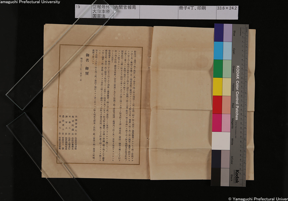 19 19-0官報号外大日本帝国憲法内閣官報局冊子4丁、印刷33.6×24.2cm 19-1官報号外大日本帝国憲法内閣官報局冊子4丁、印刷33.6×24.2cm 19-2官報号外大日本帝国憲法内閣官報局冊子4丁、印刷33.6×24.2cm 19-3官報号外大日本帝国憲法内閣官報局冊子4丁、印刷33.6×24.2cm 19-4官報号外大日本帝国憲法内閣官報局冊子4丁、印刷33.6×24.2cm 古写真編 文書編 拓本編 Home About
